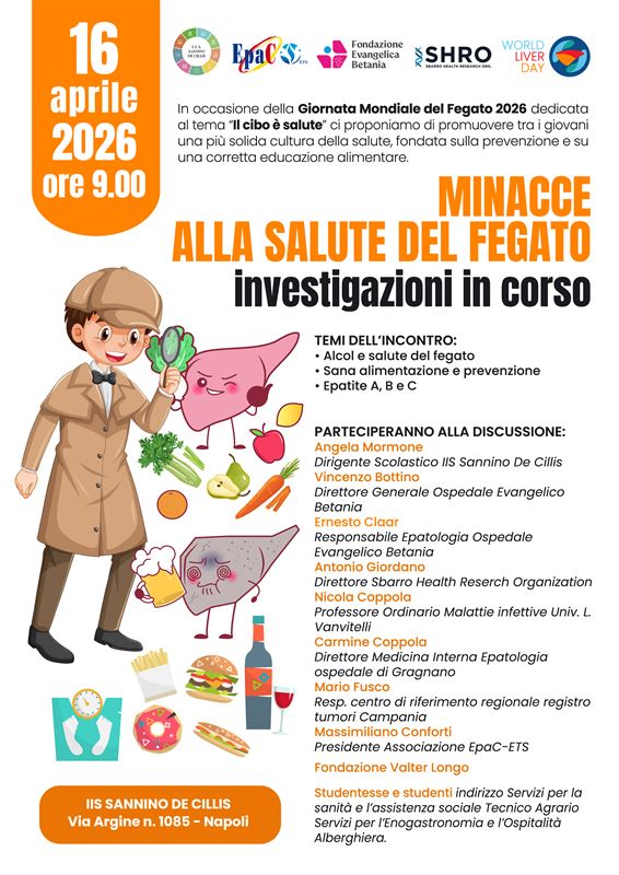 Napoli – In occasione della Giornata Mondiale del Fegato 2026, dedicata al tema "Il cibo è salute", l'Istituto d’Istruzione Superiore Sannino De Cillis di Napoli ospiterà un importante incontro di sensibilizzazione rivolto alle nuove generazioni. L'evento, previsto per il giorno 16 aprile alle ore 9:00 presso la sede di Via Argine n. 1085, mira a consolidare una cultura della prevenzione e dell'educazione alimentare tra gli studenti.